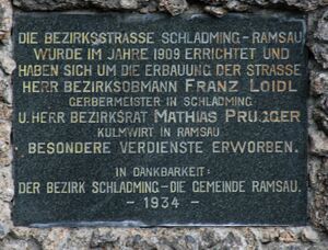 Das Kleindenkmal Gedenktafel Ramsauer Straße ist eine Gedenktafel auf 1 035 m ü. A. in der Gemeinde Ramsau am Dachstein.