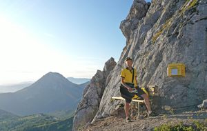 Direkt am Postkasten sind Ansichtskarten mit einem wunderschönen Dachsteinmotiv zur kostenlosen Entnahme hinterlegt. Um das Porto brauchen sich die Wanderer nicht zu kümmern, das übernimmt der Tourismusverband Ramsau am Dachstein. Zweimal wöchentlich nehmen Mitarbeiter des Tourismusverbands, oder wie erst kürzlich vom Ramsauer Postboten Kurt Hutegger (im Bild), den eineinhalb Stunden Marsch in Kauf und bringen alle Postkarten für den Versand in das Tal.