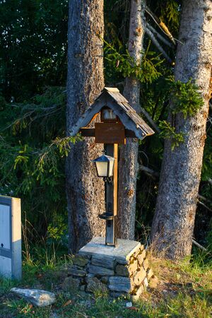 Das unbenannte Marterl steht am Rand der Forststraße auf den Hauser Kaibling.