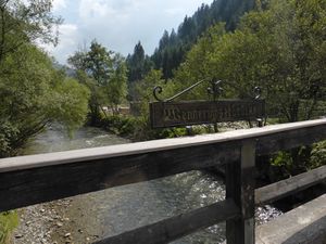 Die Holzbrücke über den Donnersbach verbindet den Wennermoserhof mit der Glattjoch Straße.